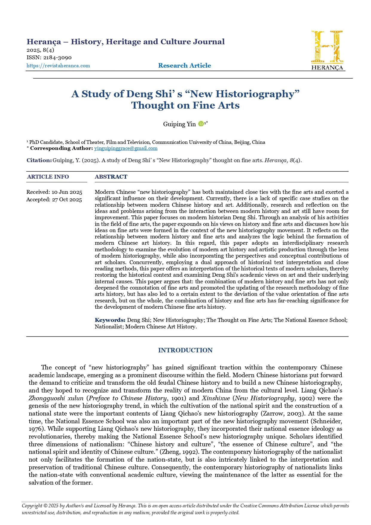 Vol. 8 No. 4 in press (2025): Herança – History, Heritage and Culture