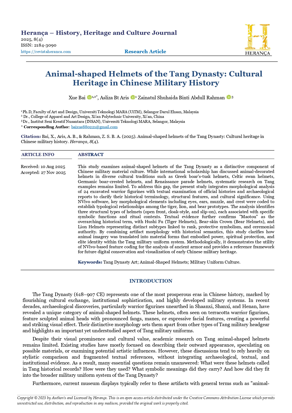 • Animal-shaped Helmets of the Tang Dynasty: Cultural Heritage in Chinese Military History