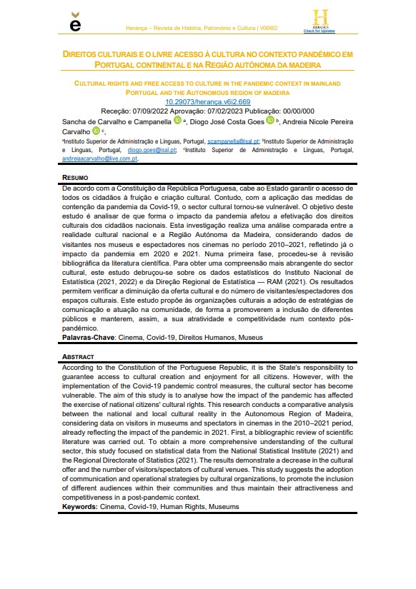 DIREITOS CULTURAIS E O LIVRE ACESSO À CULTURA NO CONTEXTO PANDÉMICO EM PORTUGAL CONTINENTAL E NA REGIÃO AUTÓNOMA DA MADEIRA