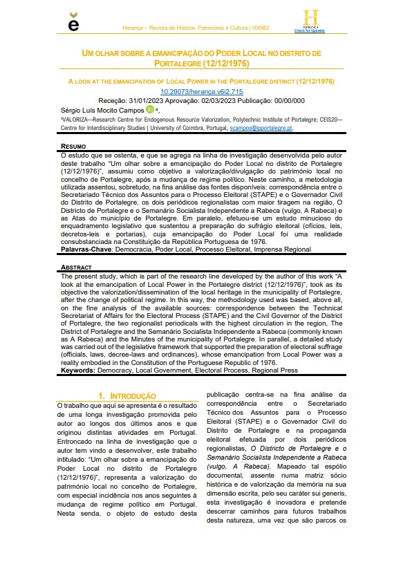 UM OLHAR SOBRE A EMANCIPAÇÃO DO PODER LOCAL NO DISTRITO DE PORTALEGRE (12/12/1976)