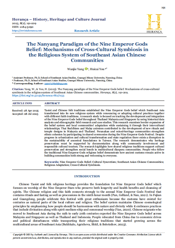 The Nanyang Paradigm of the Nine Emperor Gods Belief: Mechanisms of Cross-Cultural Symbiosis in the Religious System of Southeast Asian Chinese Communities