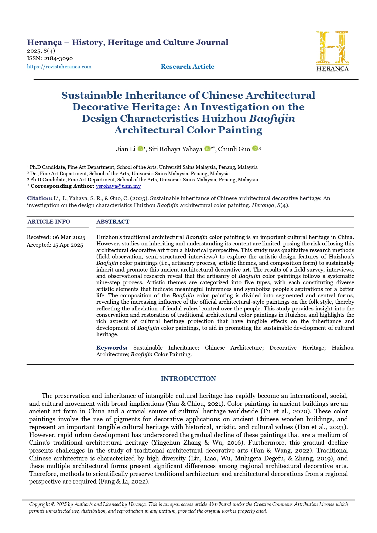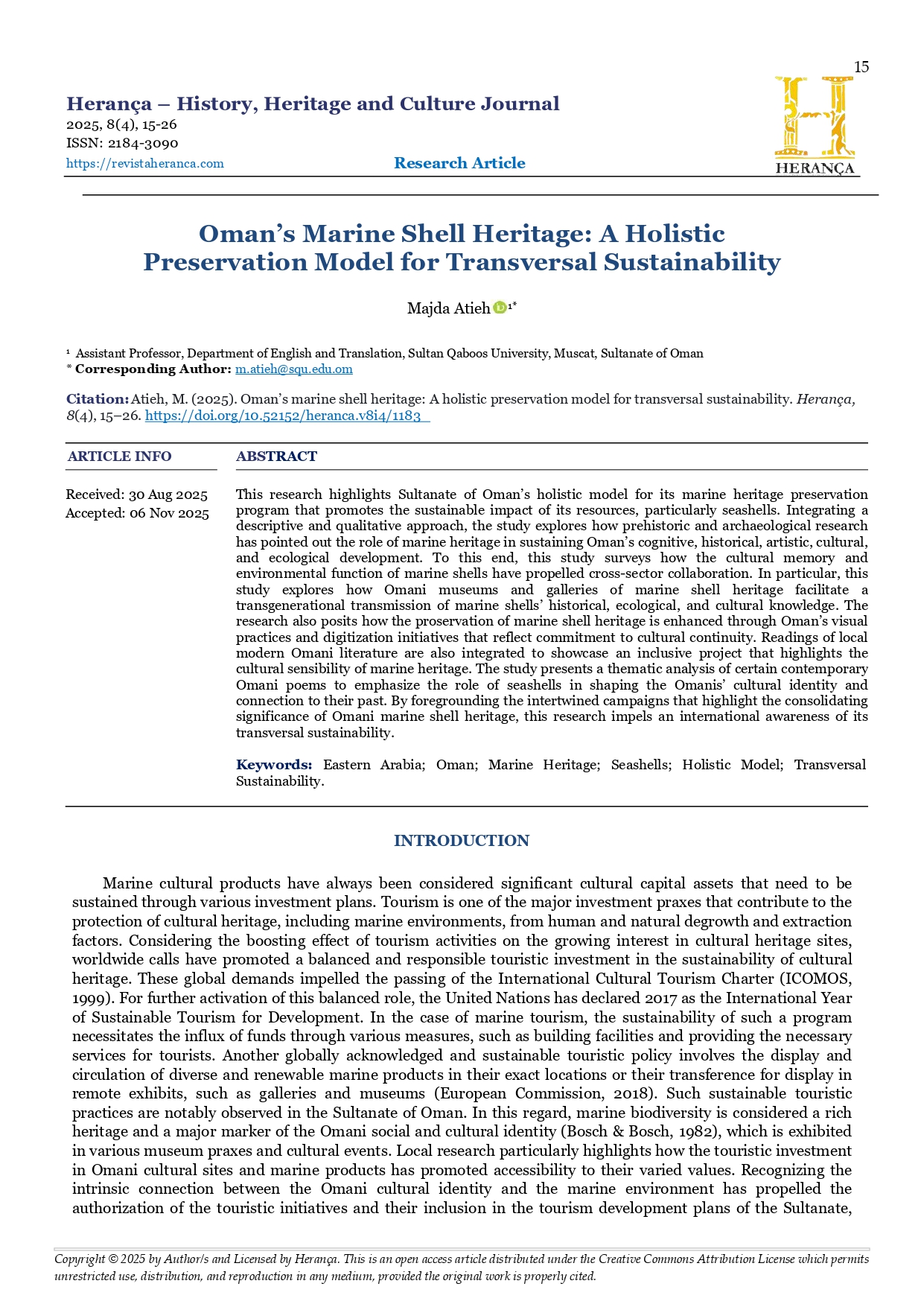 Vol. 8 No. 4 in press (2025): Herança – History, Heritage and Culture