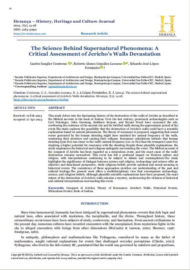 Ticho, J. (2023). La Conquista de Jericó: Enigma y Descubrimientos Arqueológicos [The conquest of Jericho: Enigma and archaeological discoveries]. Revista de Arqueología, 45(2), 112-127.